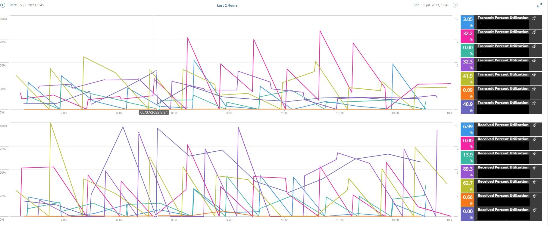 when I changed the configuration from snmpv2 to snmpv3, the graphic corresponding to the percentage of transmission/reception utilization corresponding to the wan interfaces started to show different spikes in the graphic. Does anyone know what this may be due to?