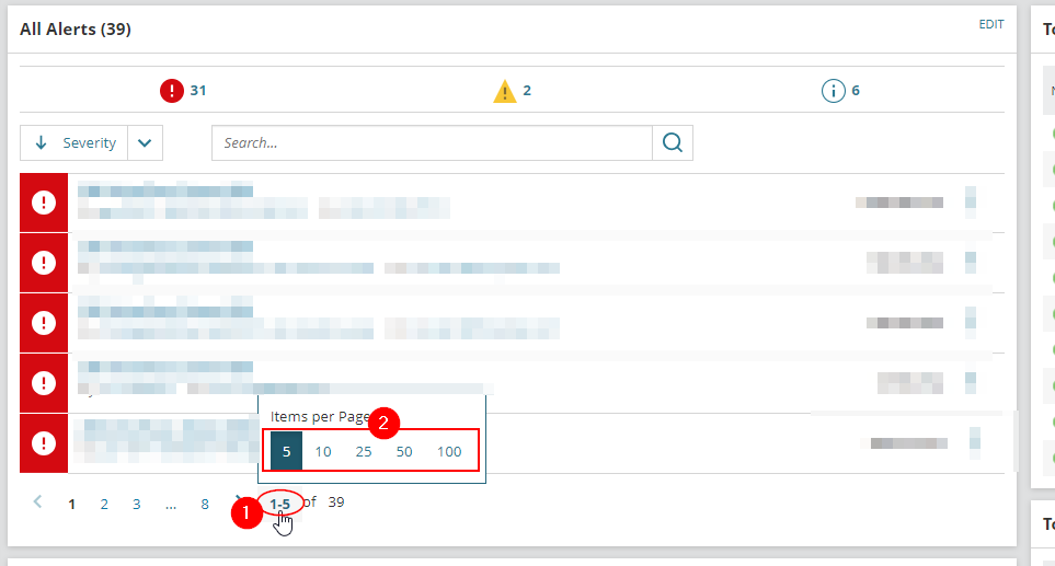 @JeffLyon23 You should be able to click on the "1-5" in the middle of the bottom area, and then choose a different number of alerts to display.