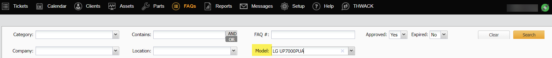 According to the developers working at SolarWinds, you'd be completely wrong if you expect behavior #1 to occur. They think that behavior 2 is appropriate (this is the FAQ's current behavior). So to them, the system is "operating as designed" but they aren't able to also provide me any proof where anyone EVER in time said "You know what...when I search for FAQ's that were assigned to a specific model...I also want Web Help Desk to return FAQ's that apply to ALL (or any) models".