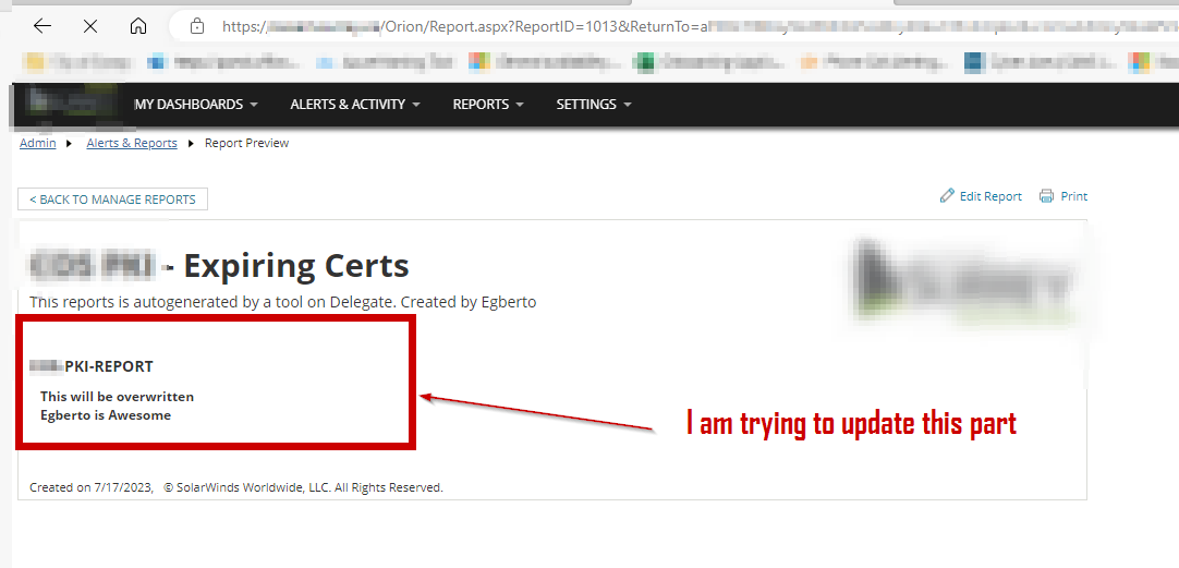 $report = Get-SwisData $swis "SELECT ReportID, Uri, Name FROM Orion.Report WHERE Name='COS PKI - Expiring Certs'"