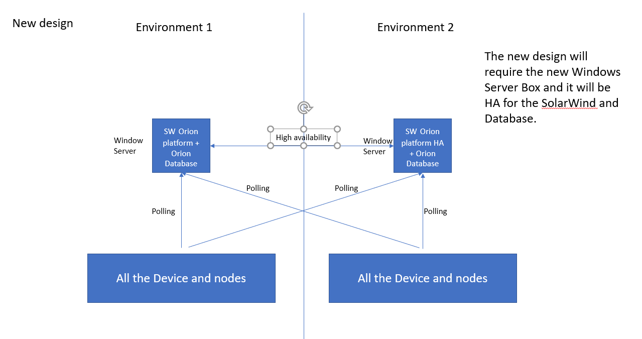 Note: 2 environment is different subnet. The SolarWinds HA will be connect to the VIP with the hostname.