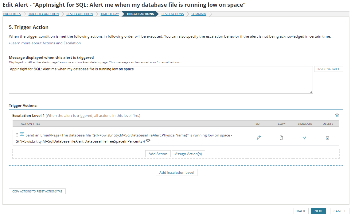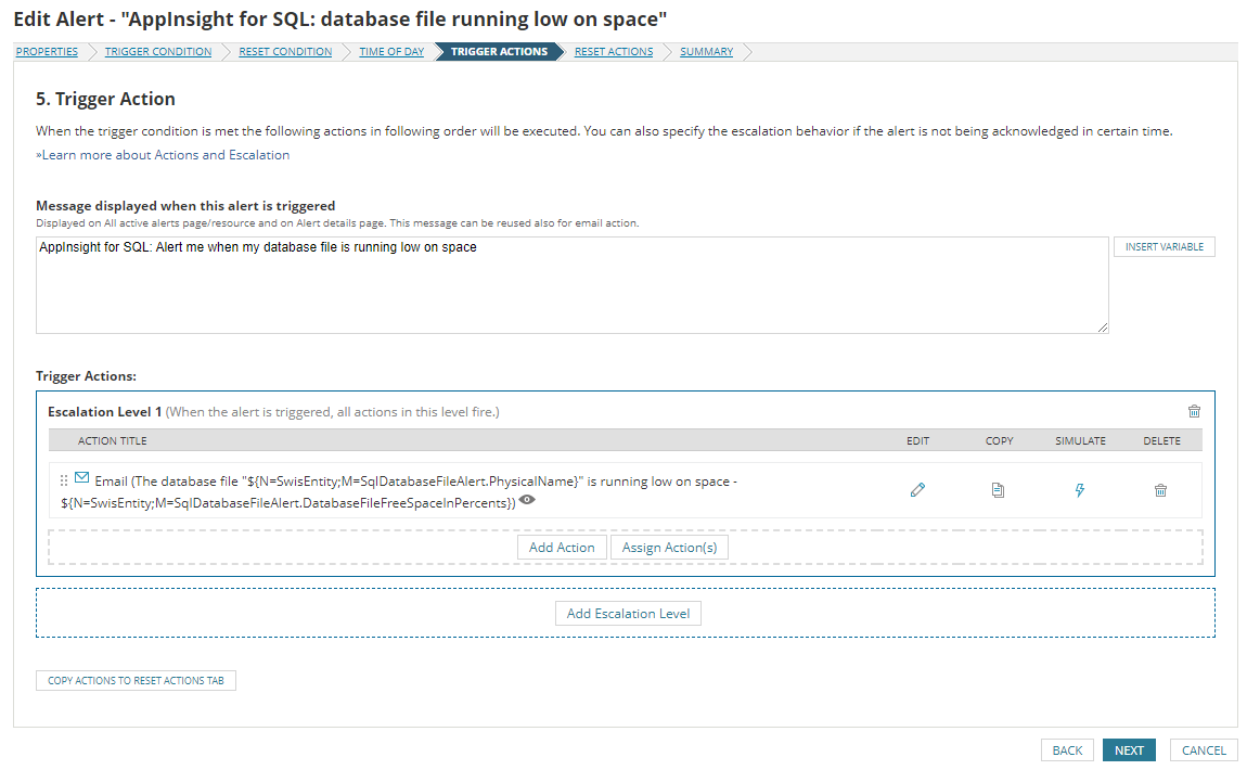 Both have identical values in the "Message displayed when this alert is triggered", near-identical trigger action configuration, similar (but not identical) values in "Name of action" fields - which I think is what's supposed to show up in the Alert Manager - and are otherwise nearly identical.
