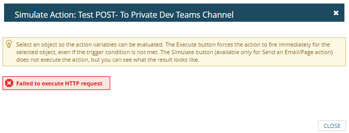 Attempting to simulate / execute alerts: "Failed to execute HTTP request"