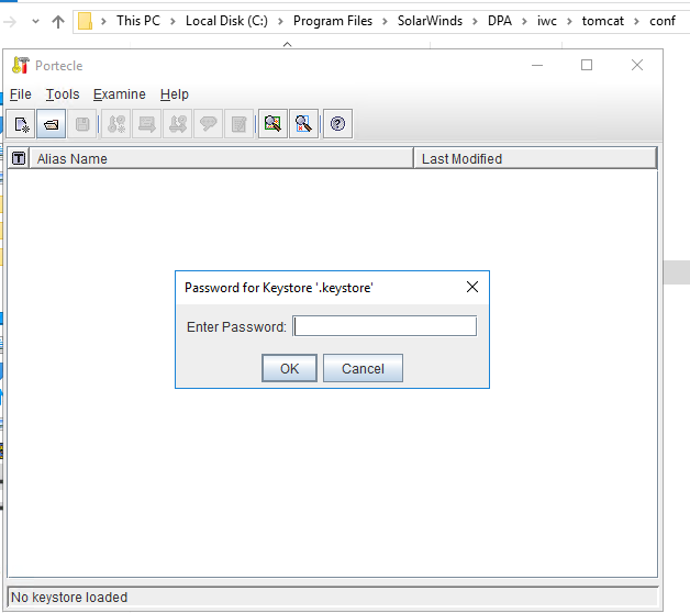 These steps require the password for the Keystore file: C:\Program Files\SolarWinds\DPA\iwc\tomcat\conf\server.xml