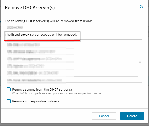 Is this just removing the scopes from IPAM? We have one or two scopes to move still and I do not want to break anything. Just want to double check before I hit delete. I do see the box that says Remove Scopes from the DHCP severs and I assume that if that box was checked it would delete the scopes off the DHCP servers as well as IPAM.
