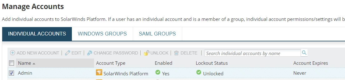 Regards monitoringlifeYes, but there it disables everything, that is, it takes away my access to all settings, manage node, etc. What I would be needing is not being able to enter the User Account section and at least not being able to edit the individual accounts, windows group, as is the case that we see in the Solarwinds demo,