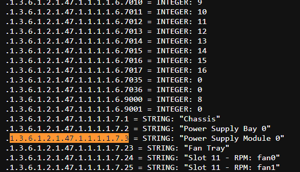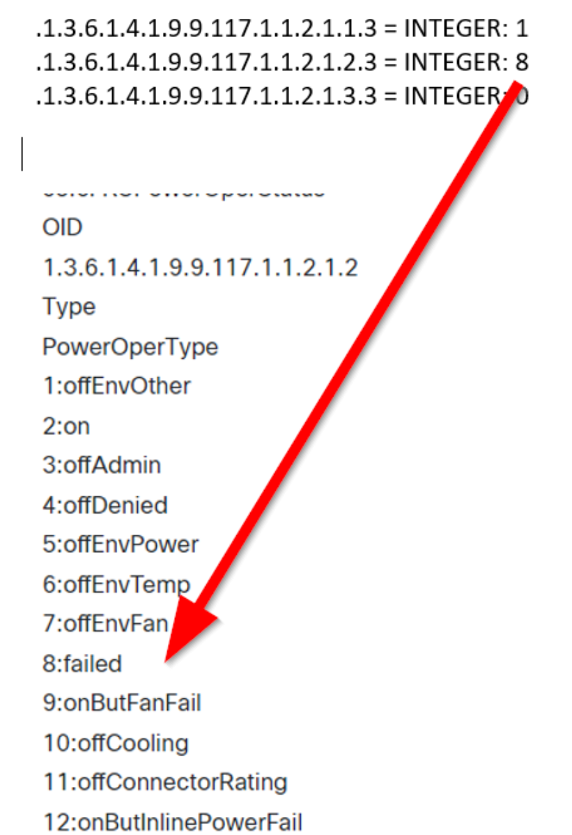 1.3.6.1.2.1.47.1.1.1.1.7.3 is mapped to 1.3.6.1.4.1.9.9.117.1.1.2.1.2 where the status is polled: