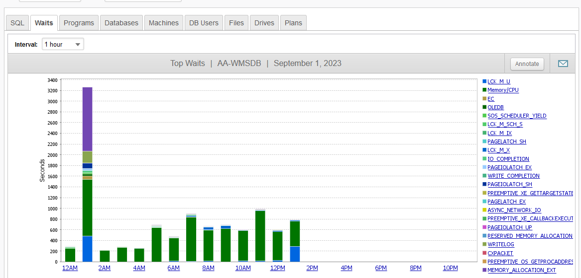We are running Solarwinds DPA on our MS SQL Server machine running SQL Server 14.0.3456.2