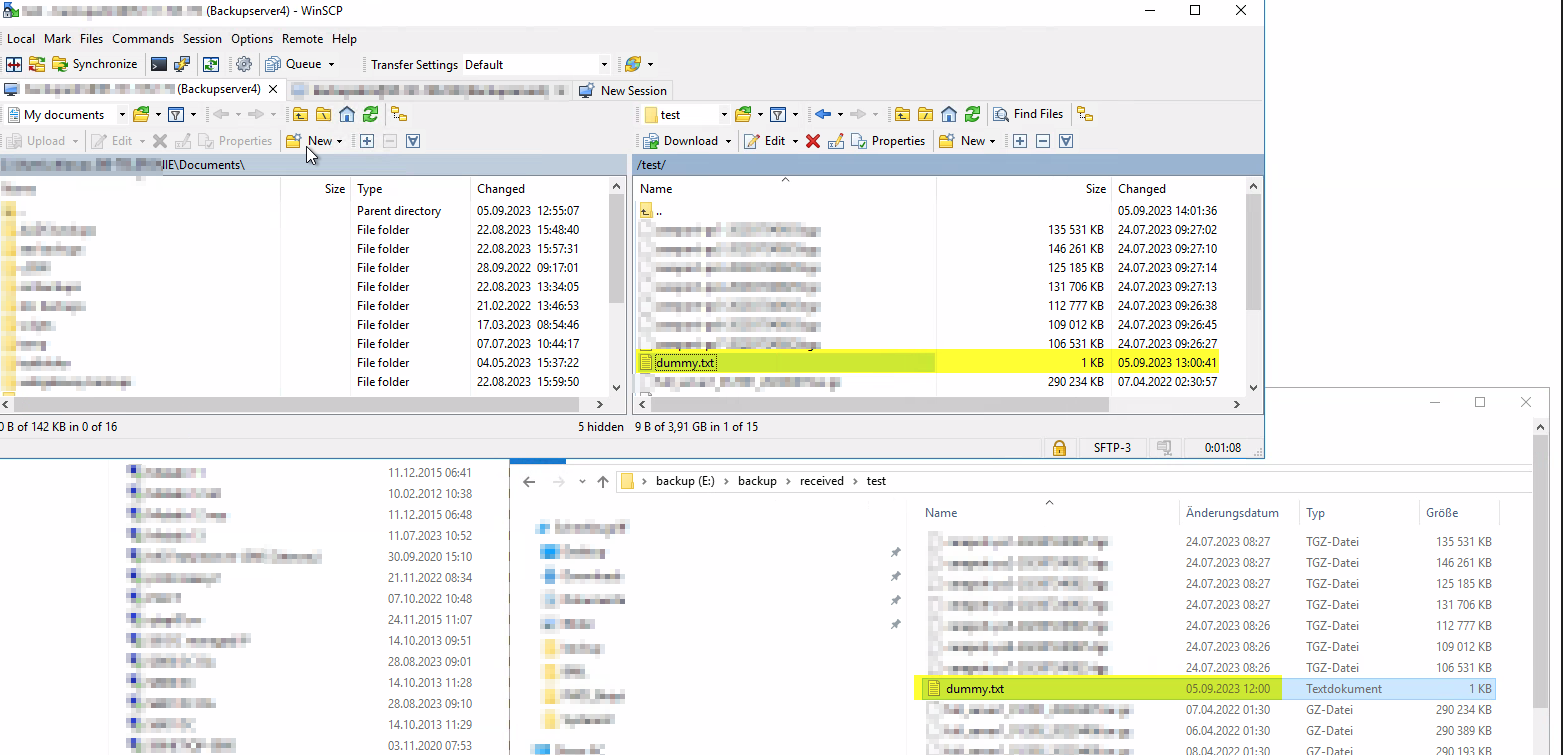 I connect trough WInSCP to the SFTP Server running Solarwinds and create a file. fe. at 2.00pm.