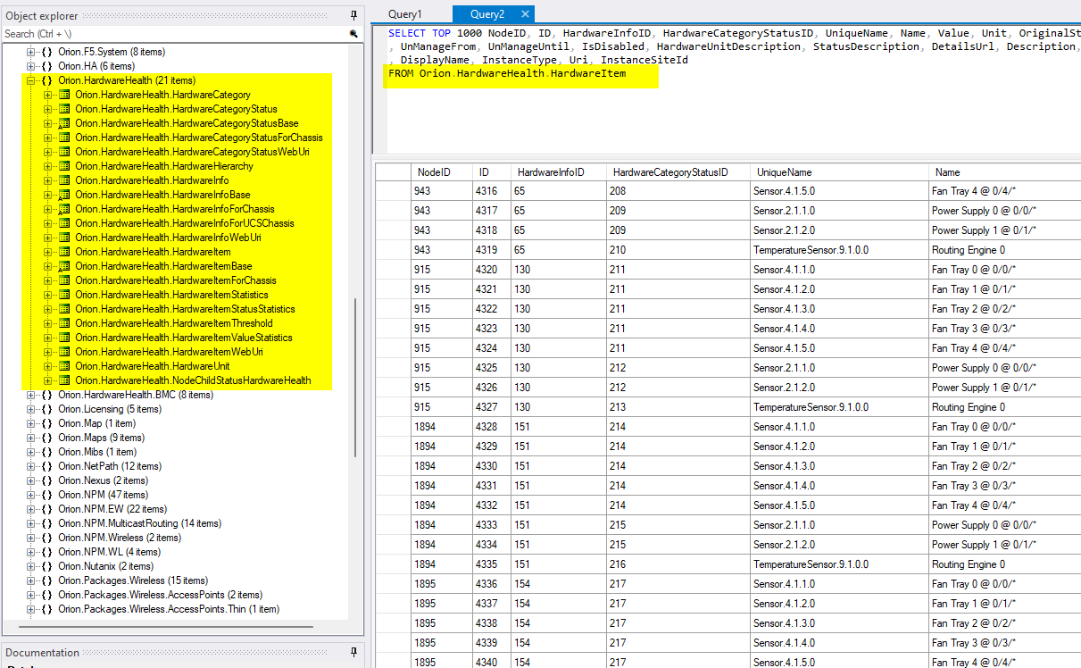 Hi, Can anyone help me on Which table I can get these data in SDK. Device Performance, Device Fan, Power Supply.