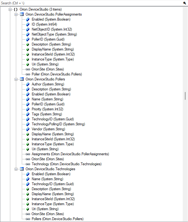 SELECT p.PollerID ,p.PollerType ,p.NetObjectType ,p.NetObjectID ,p.Uri ,'Orion.Pollers' AS [Source]FROM Orion.Pollers AS pWHERE p.Enabled = 1UNION ALL( SELECT d.ID AS [PollerId] ,dt.Name AS [PollerType] ,d.NetObjectType ,d.NetObjectID ,d.Uri ,'Orion.DeviceStudio' AS [Source]FROM Orion.DeviceStudio.PollerAssignments AS dINNER JOIN Orion.DeviceStudio.Pollers AS dp ON dp.PollerID = d.PollerIDINNER JOIN Orion.DeviceStudio.Technologies AS dt ON dt.TechnologyID = dp.TechnologyIDWHERE d.Enabled = 1 )