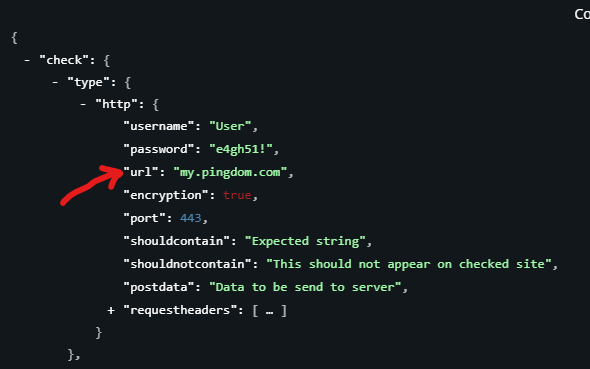 Right now I can see that the full_url for a check is only shown in the webhook, more info here https://www.pingdom.com/resources/webhooks/#HTTP-check--POST-