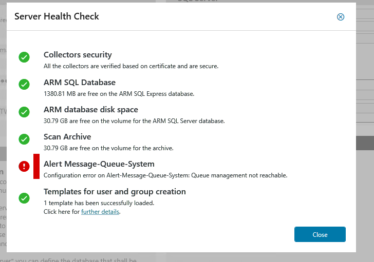 i have no idea what the "Queue management" could be. Why its not available? Even if everything works. Even the Alert-Email about this special problem is working fine. Thats how we get noticed about the issue