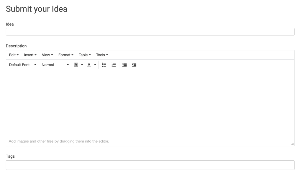 - This will take you to a page where you can input your feature request as well as any additional materials or media.