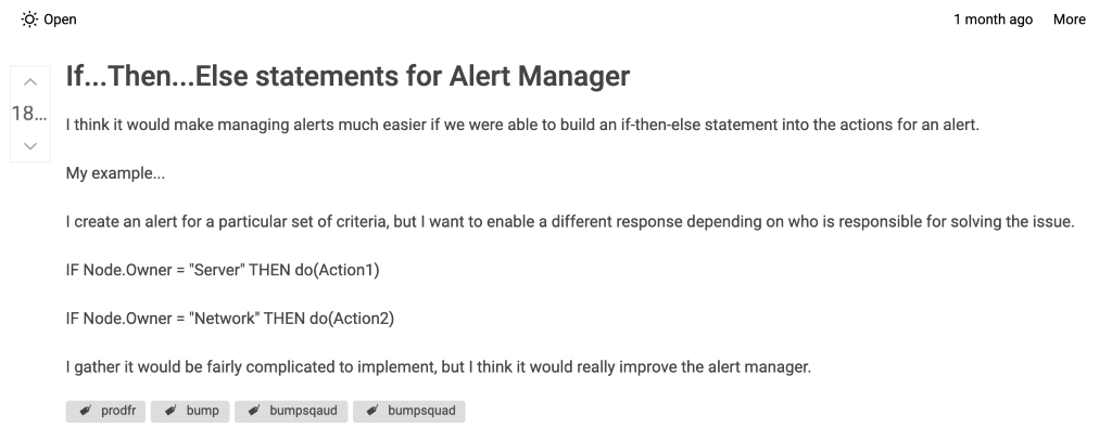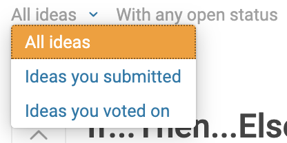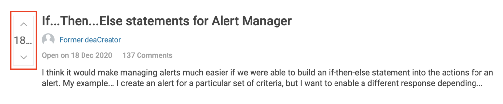 Go to the appropriate forum by clicking “Product Forums” and choosing the option that best suits your needs. Once you are on the forum page, click the “Feature Requests” tab. To search for an existing feature request, use the top search bar. Click to see more details.To vote a feature request up, use the up arrow, to vote it down, use the down arrow next to the idea subject on the page. To learn more about the idea, click on the subject to view the whole post. From the Feature Request home page, you can also view ideas you have submitted or voted on.