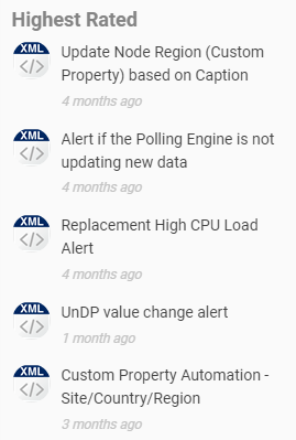 The THWACK Content Exchange (CX) is where users of the products can freely share their own contributions as well as use content crafted by the community. The CX is organized by category and then by content type.