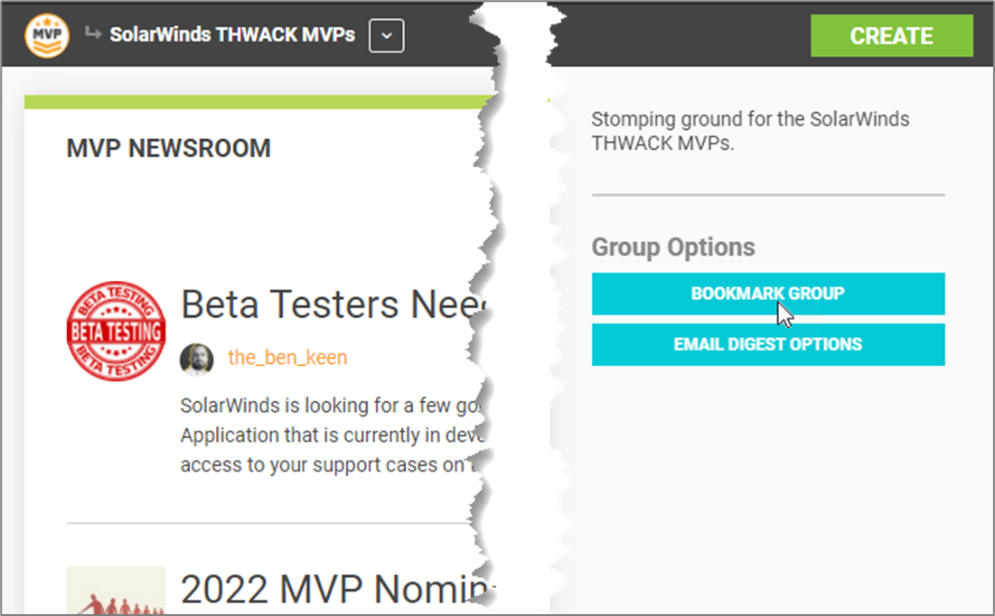 You are welcome to add a bookmark to your browser for this space, but we’d also recommend you add an “in THWACK” bookmark. In the right-rail, click “Bookmark Group.”