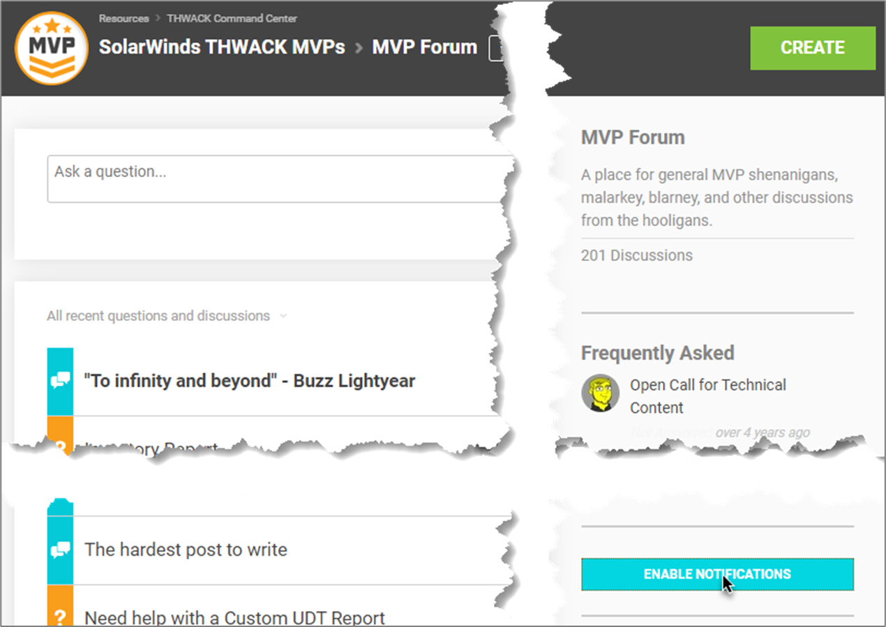 The MVP Forum is your place to ask questions that you may not want to put elsewhere on THWACK. They can be pretty much about anything, but if someone else asks a question or poses an interesting discussion topic, you don't want to be left behind, right?