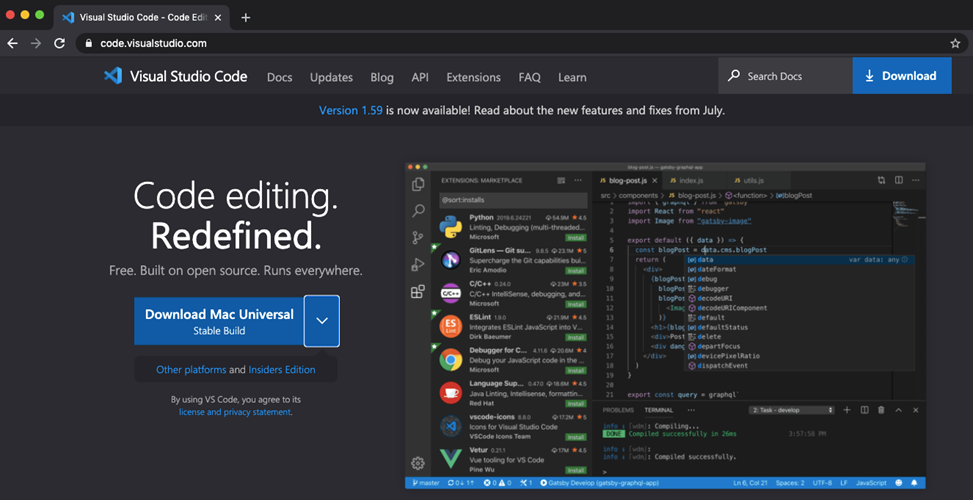 Navigate to https://code.visualstudio.com and download the latest stable release for macOS.
