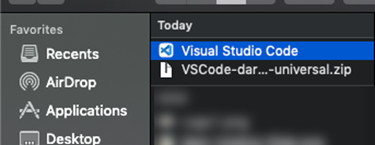 Either leave the “Visual Studio Code” application where it is or drag it to Applications (recommended).