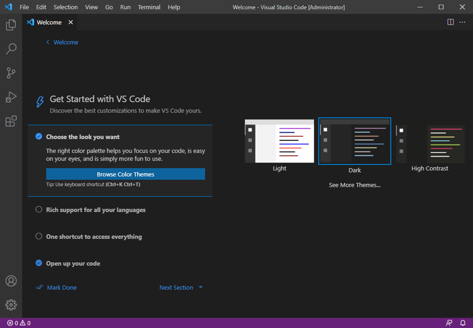 Open VS Code and choose a theme.