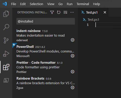On the left-hand bar, click on the ‘blocks’ to access the extensions. There are several that I like to use in addition to the required one for PowerShell, and you can either take the recommendations or leave them.