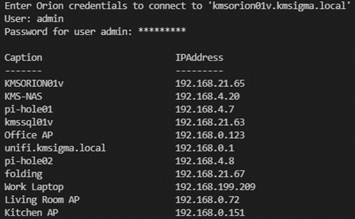 If you get no errors and the data is returned, then you have successfully completed all the steps and are ready to build your own scripts to interact with the SolarWinds Orion API via PowerShell.