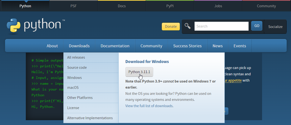 At the time of this writing 3.11.1 was the most recent release of Python.