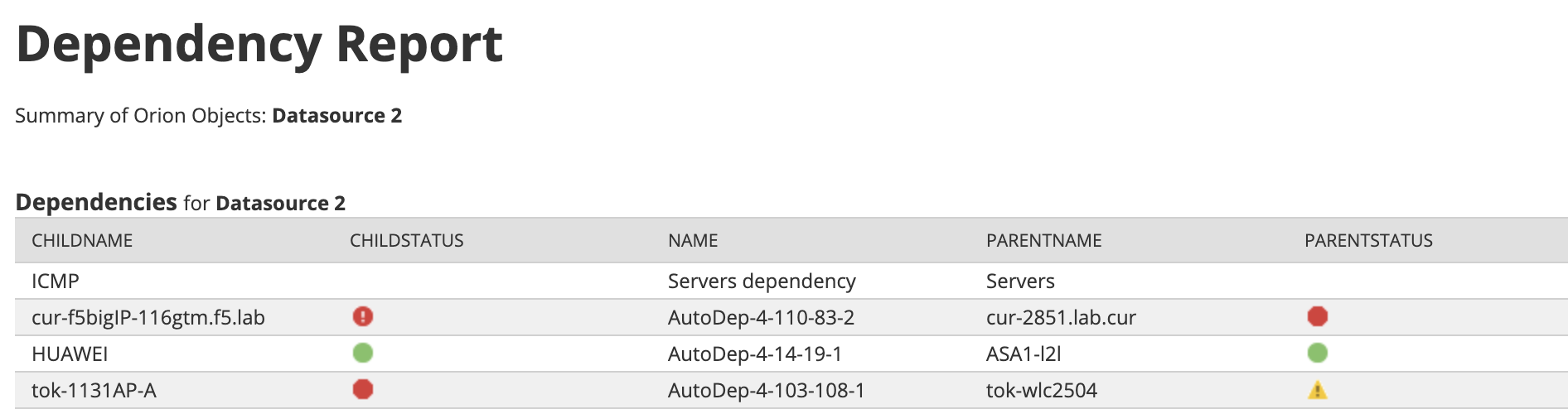 SolarWinds Orion Platform Status Overview