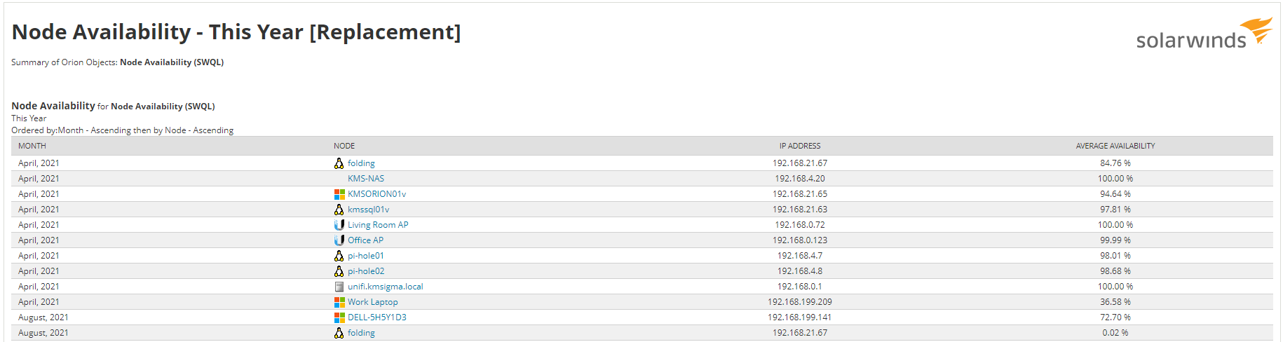 In the event that you have a significantly larger infrastructure you may want to add additional filters beyond the ones I have in the SWQL Query (like Availability is not 100% or Availability is less than XX%), but that's why I have so many comments in the SWQL.