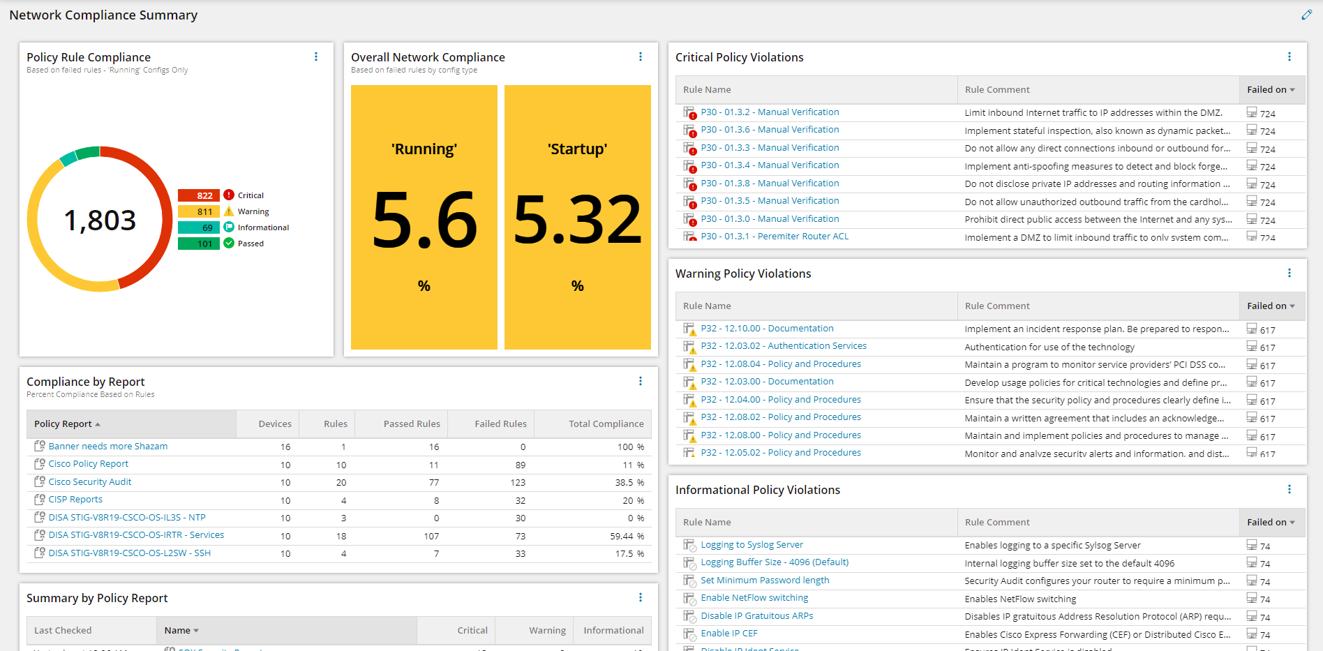 All of the components are custom SWQL-backed, but I kept as many comments in as possible so that it can be configured. I only have a lab environment where I have (nearly) all of the Compliance Policies enabled, so my dashboard looks horrible. Let me know if it works for you and in your environment.