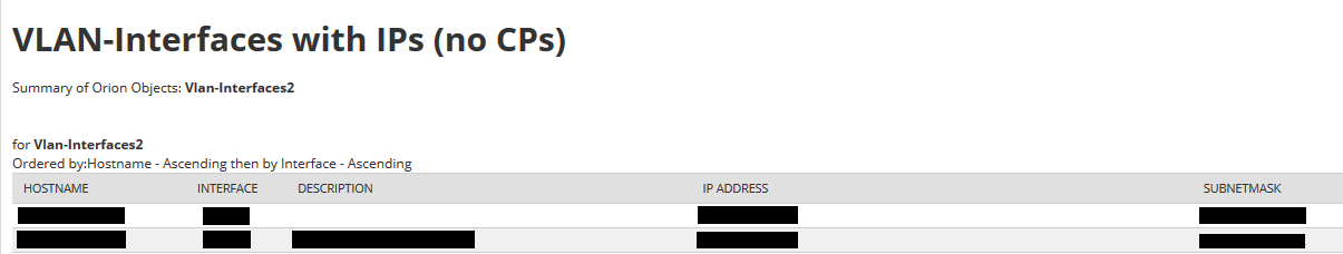 Hostname (systemname), Interface, Description, IP Address & Subnetmask