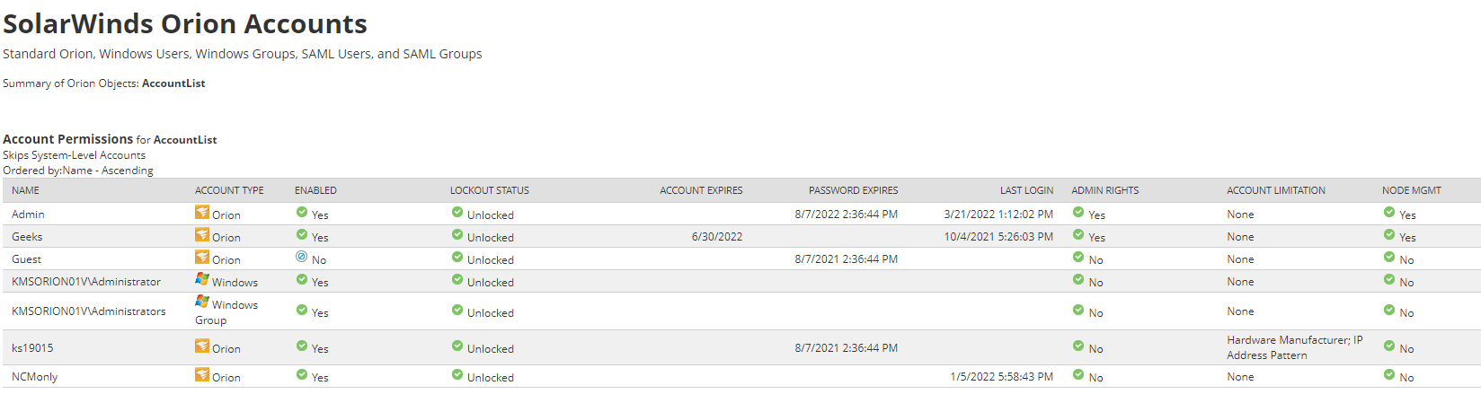 This may not be the "ideal" way to get the information, but it does work to pull the list of accounts. It's very wide. (Like very wide)