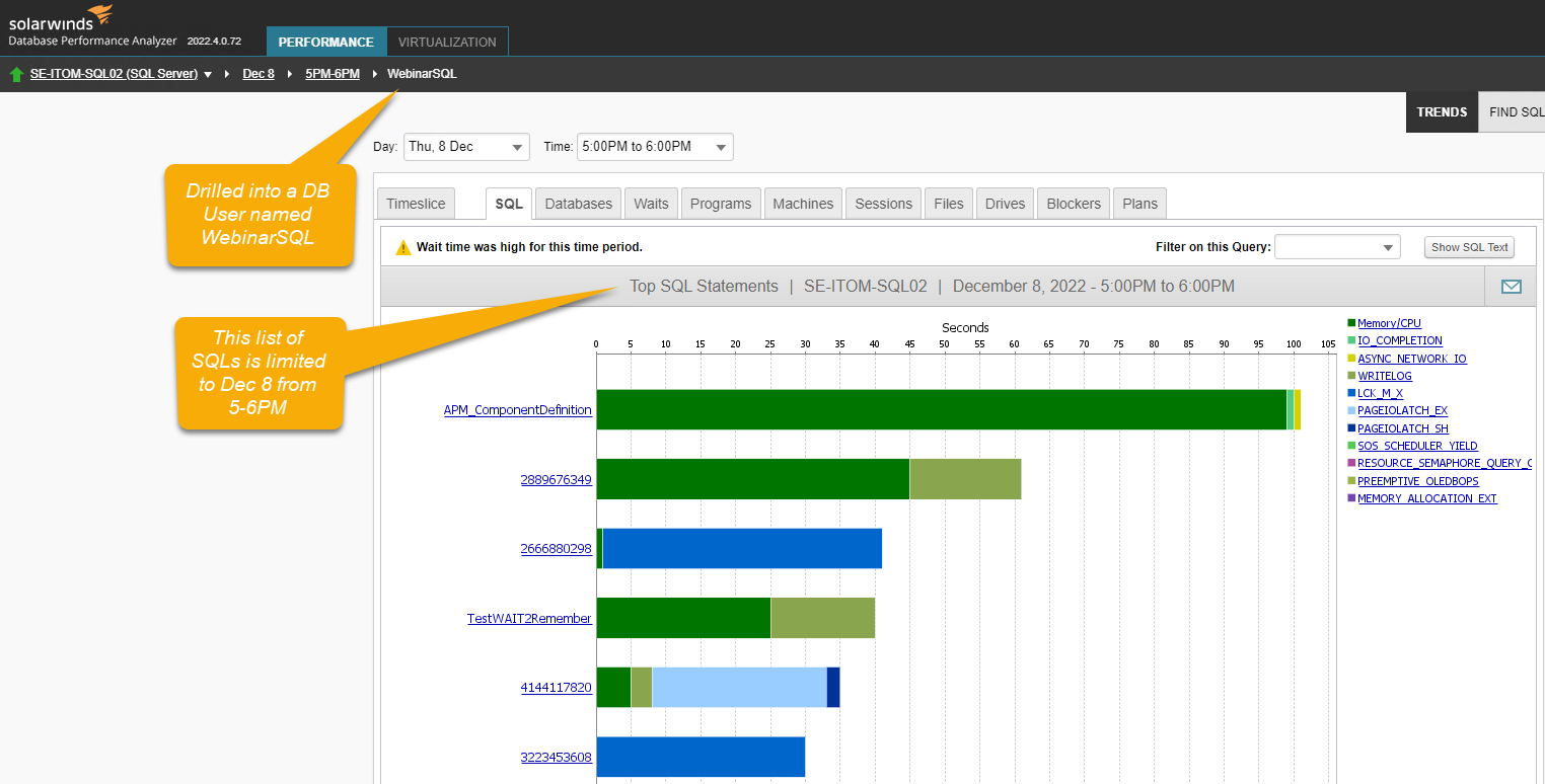 However, the DPA repository can be mined to obtain this information for the last 30 days (default data retention). Connect to the DPA repository with Management Studio, open a query and copy/paste the attached script. Modify the 4 parameters at the top of the script as needed.