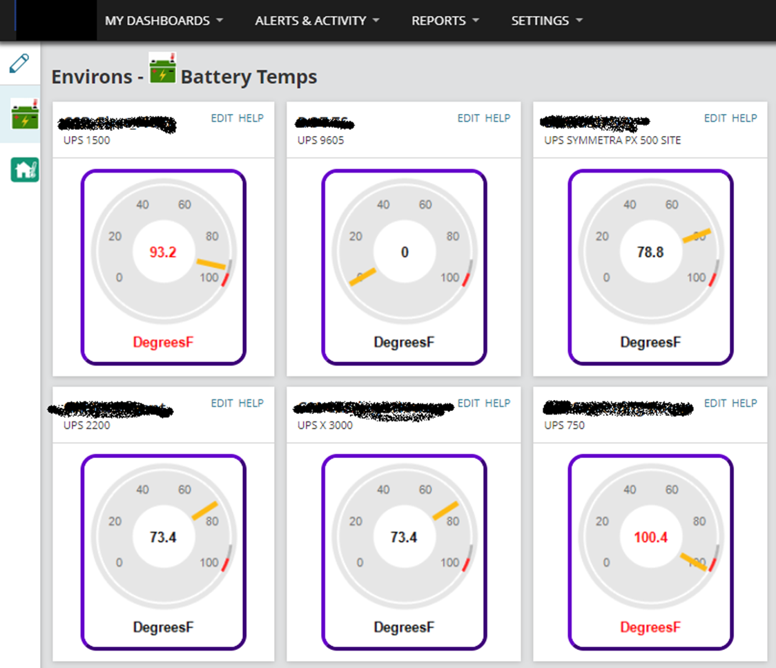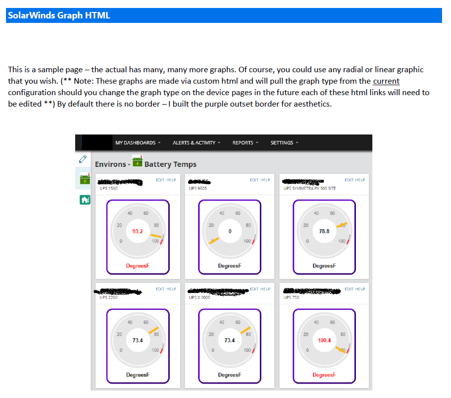 What I have is a sample of the battery temperature of APC UPS devices around the network - this can be done for any radial or linear graph in your build