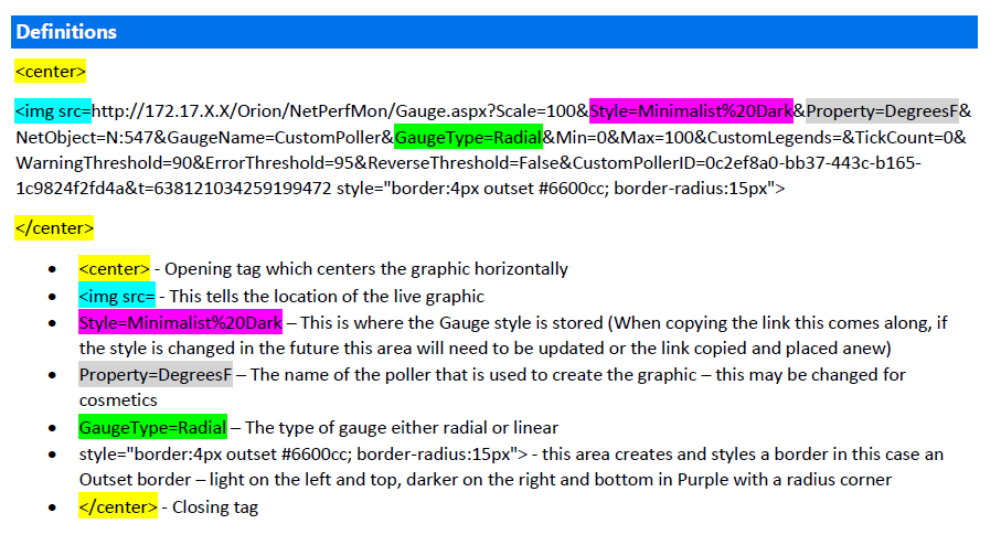 I like to create pages that show, at a glance, the overall health of elements in my environment. i.e. number of clients per AP, temperature of devices or sensors, number of current VPN connections and such. You can find this information on the individual pages of each device, but that's tedious. You can find the information on a table, but that's numbers on a page. With graphs you get a quick visual and by having them all on one page then anomalies jump right out. You can see by the sample how the number and title are red on devices that have higher temperatures.