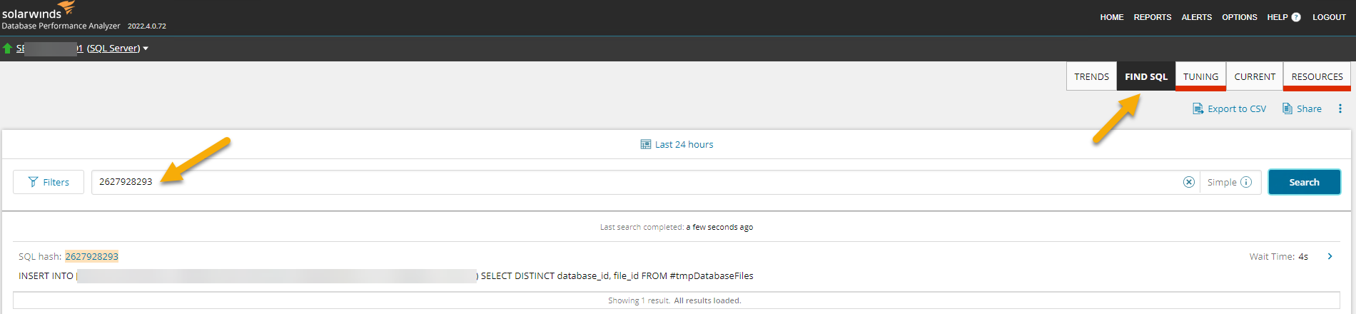 The customer then asked if there was a way to search through DPA to find other examples of the CONVERT_IMPLICIT happening. The attached query will search saved plans in the DPA repository for the specified instance and timeframe, and find each of the occurrences. The result set provides the DPA hash values for the SQL statement and plan ranked by the durations. With these values, use the DPA Find SQL feature to review these statements.