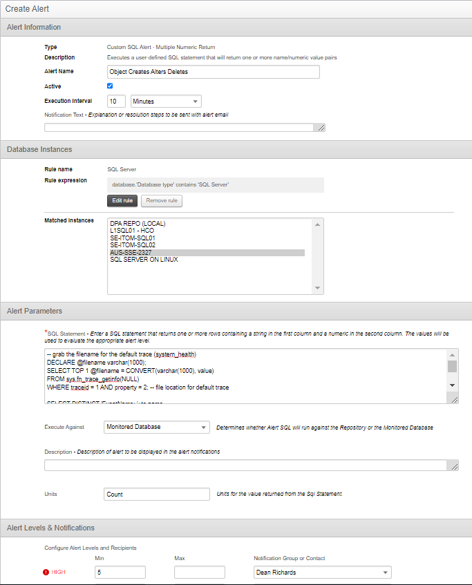 Within SQL Server, it is nice to know when objects are getting created, modified and or dropped. To configure DPA to alert you about these events, here are the steps: