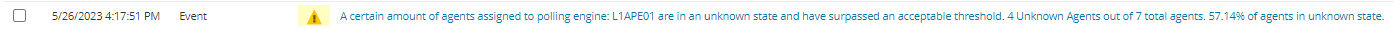 - Percentage of Agent in unknown state (Yellow): From the screenshot this is set to 80% of all agents assigned to that APE that are in an unknown state.
