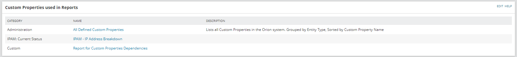 This custom query widget will display any reports which have logic reliant upon Custom Properties.