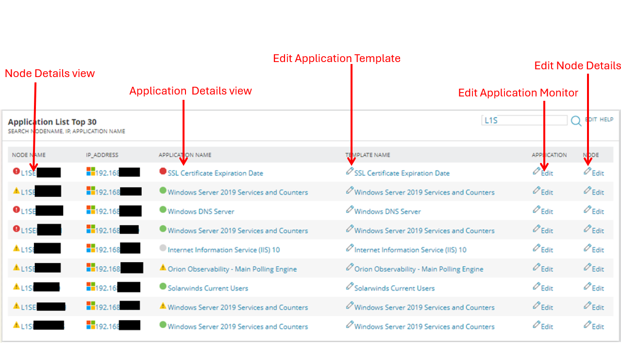 This simple custom query widget simplifies the identification of which Applications are assigned to a Node and allow easy editing of the Application Monitor, Application Template or Node.