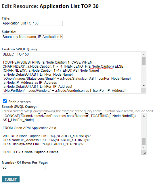 - Add the Custom Query Widget to any Summary Dashboard and paste in the attached text into the top Custom SWQL Query: text box.