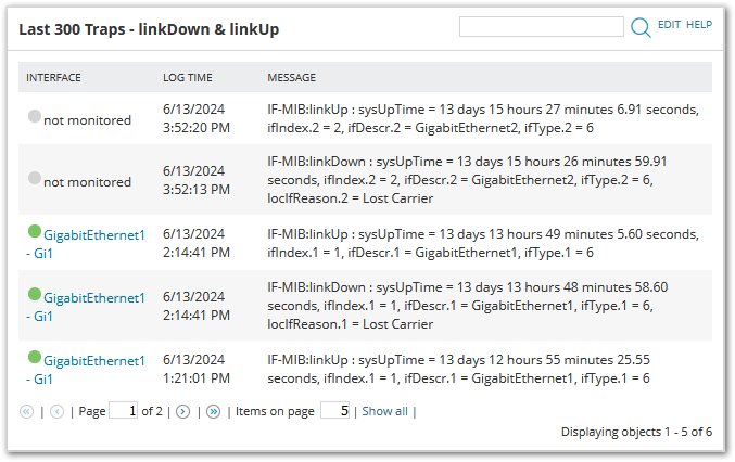 Below Node Details Custom Query widget is showing only linkDown and linkUp traps. It is also finding correlated monitored network interface in NPM.