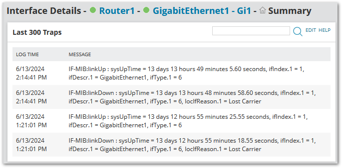 Interface Details Custom Query for Last 300 Traps. This widget is finding traps based on Interface Index.