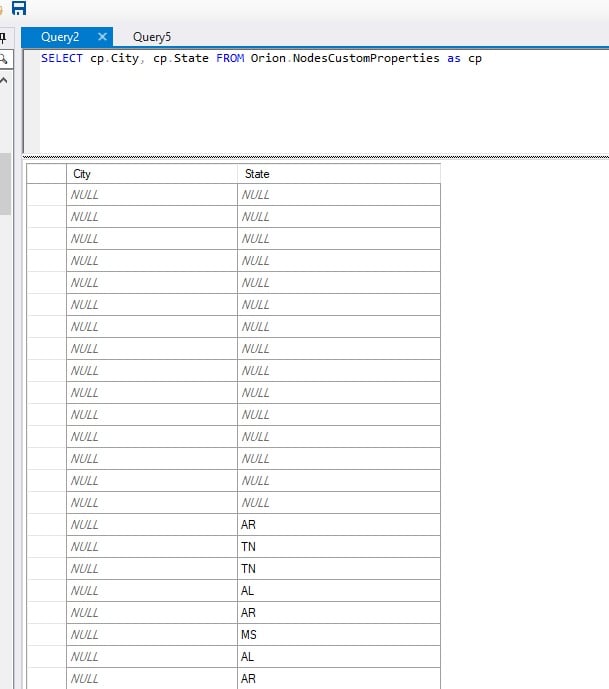 SELECT cp.City, cp.State FROM Orion.NodesCustomProperties as cp