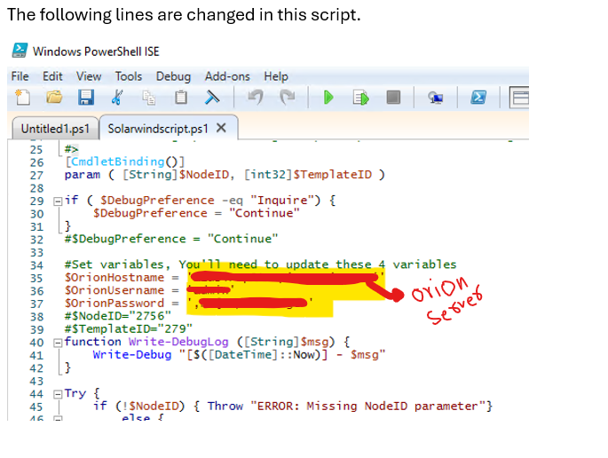 6) Go to your main orion server and copy the script from this link to your server. (the link has an attachment in it-just download it and then edit the line 35, 36, 37 as follow) Or see the attachment to this Post
