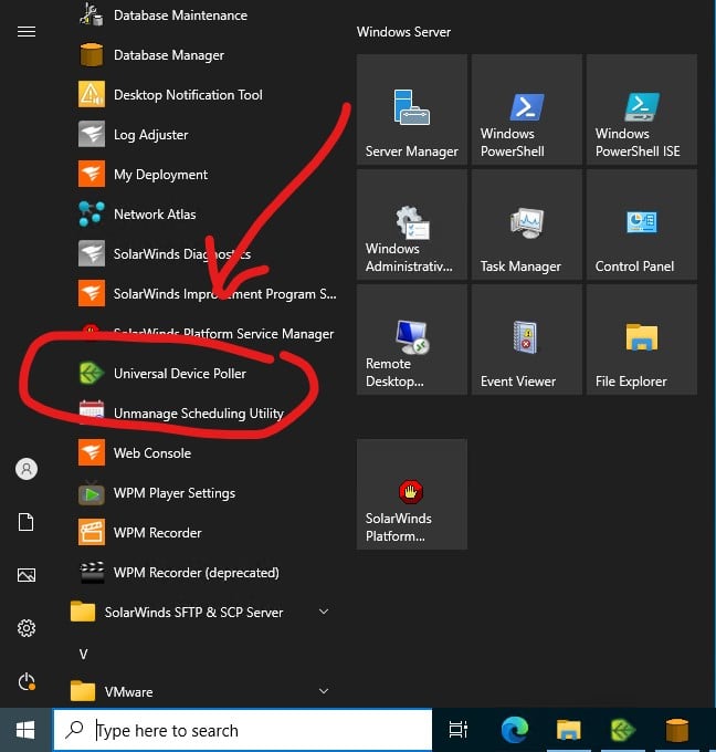 On Solarwinds server, launch the Universal Device Poller tool from the SolarWinds Orion folder in your Start Menu.