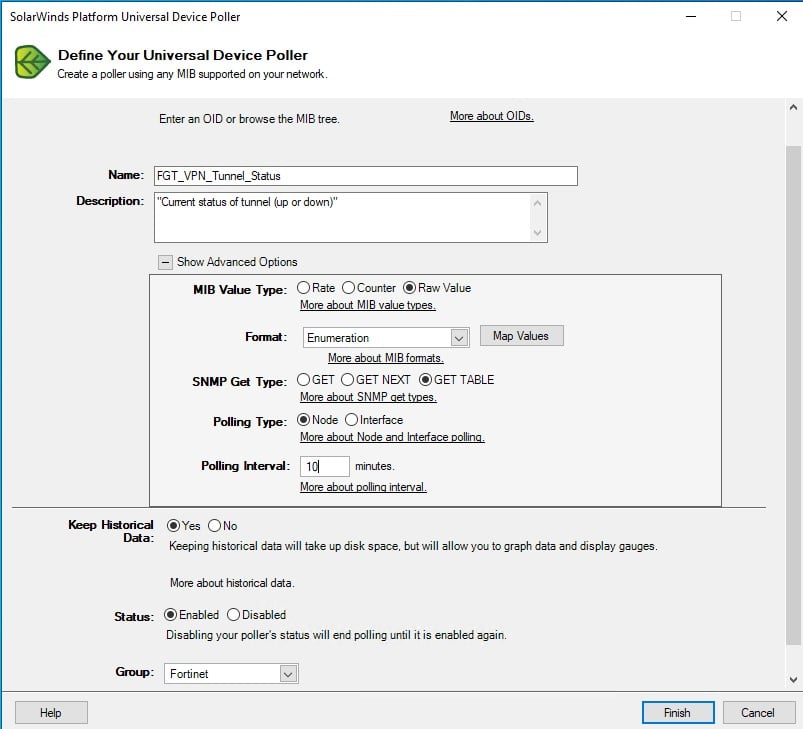 - Name the poller (e.g., “FortiGate IPSec Interface Status”).