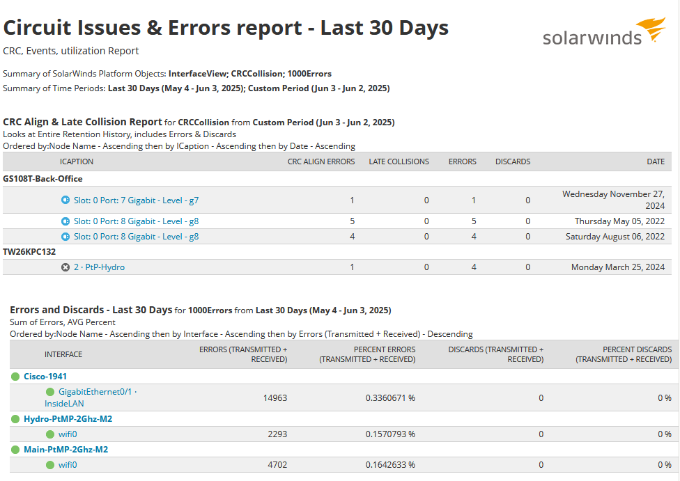 Report include CRC Align & Late Collision checking entire Interface history. Date is included since this scenario could be extremely rare.
