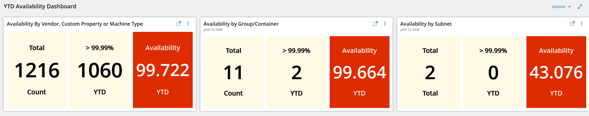 Below is a screenshot of what the dashboard looks like. Provided are 3 different ways of doing the same availability. I set a threshold value of < 99.99 for the Availability YTD. The background will be green if the Availability YTD value is > 99.99.